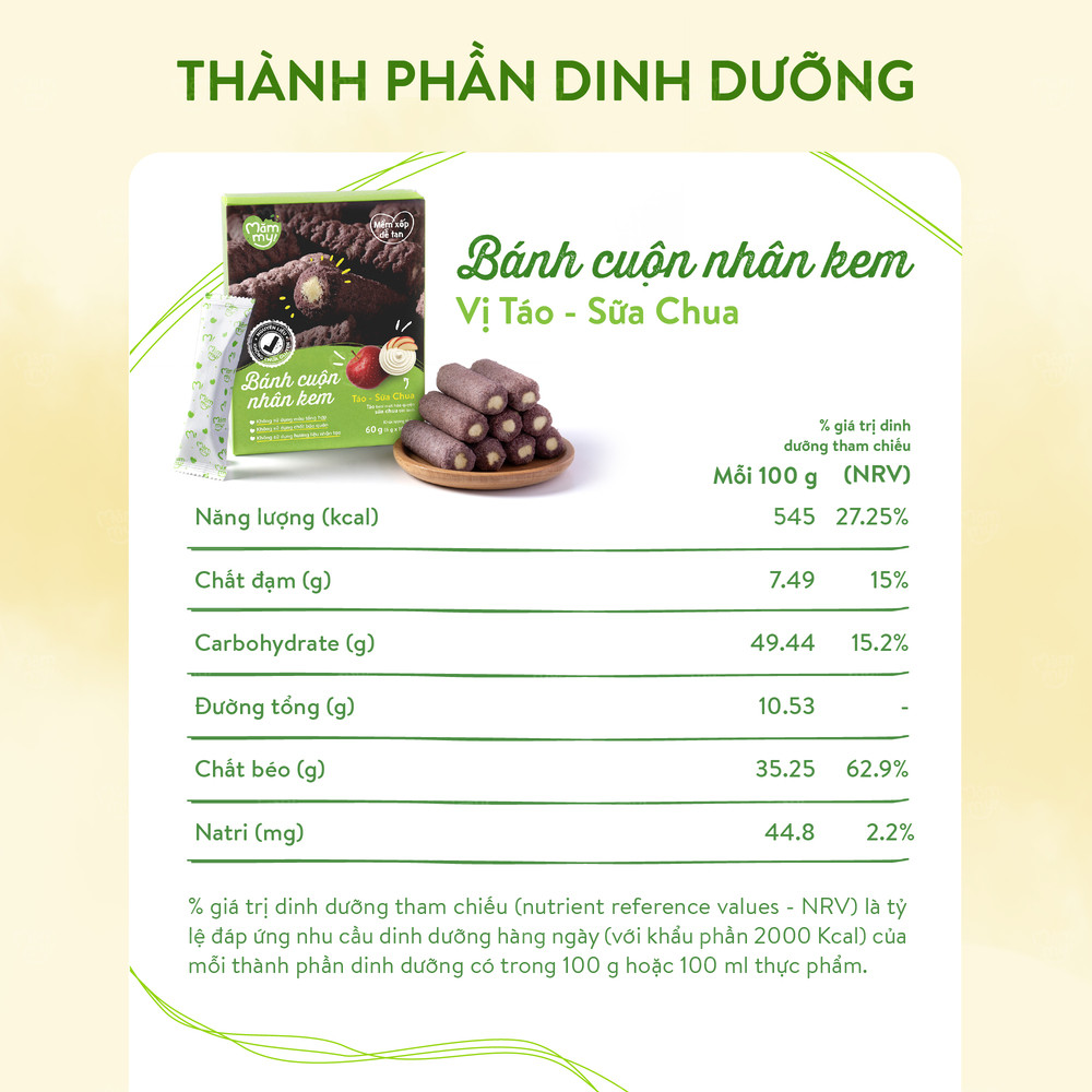Giai đoạn ăn dặm là thời điểm vàng để bé tập ăn ngon, hấp thu tốt và phát triển khỏe mạnh cả về thể chất lẫn trí tuệ. Với Bánh cuộn nhân kem Táo – Sữa Chua 60g (10 thanh), sản phẩm được thiết kế dành riêng cho bé từ 7 tháng tuổi trở lên, mang đến sự kết hợp hài hòa giữa vỏ bánh giòn nhẹ, dễ tan và nhân kem mềm mịn từ táo và sữa chua, giúp bé ăn ngon miệng và làm quen với đa dạng hương vị ngay từ sớm.