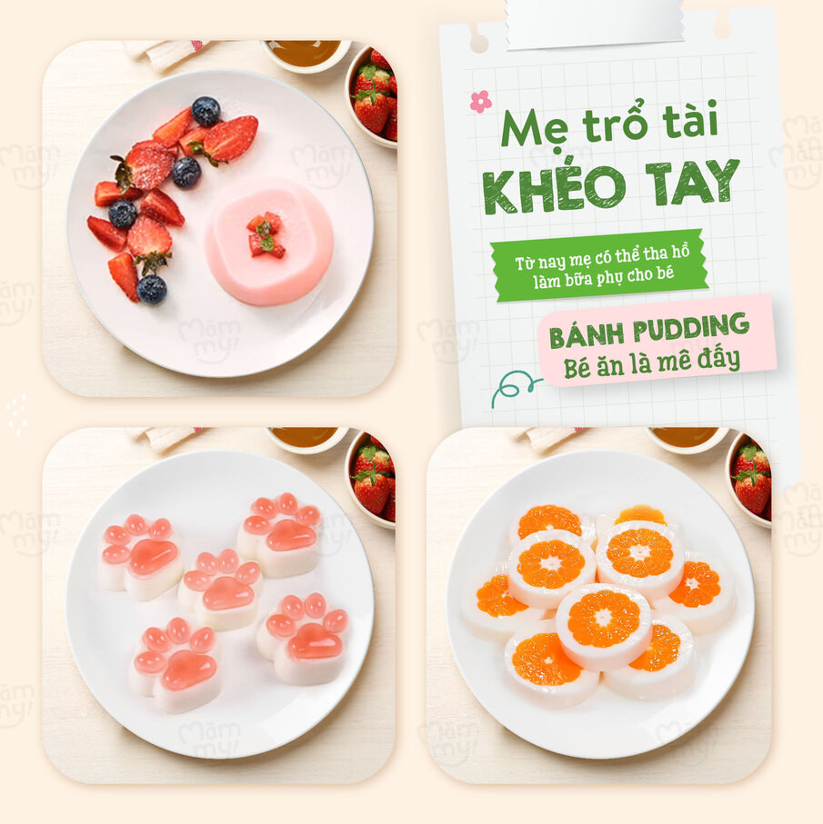 Giai đoạn ăn dặm là thời điểm vàng để bé khám phá những hương vị mới và bổ sung dưỡng chất cho sự phát triển toàn diện. Với Bột làm bánh Pudding chân gấu Mămmy, mẹ có thể tự tay chuẩn bị bữa phụ thơm ngon, núng nính chỉ trong 5 phút. Sản phẩm không chỉ mang lại niềm vui ăn uống cho bé từ 6 tháng tuổi mà còn giúp mẹ tiết kiệm thời gian nhờ công thức đơn giản, giữ trọn dinh dưỡng và an toàn tuyệt đối.