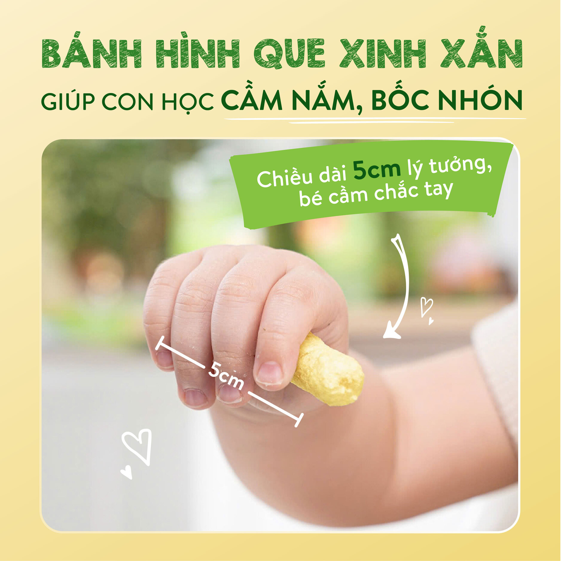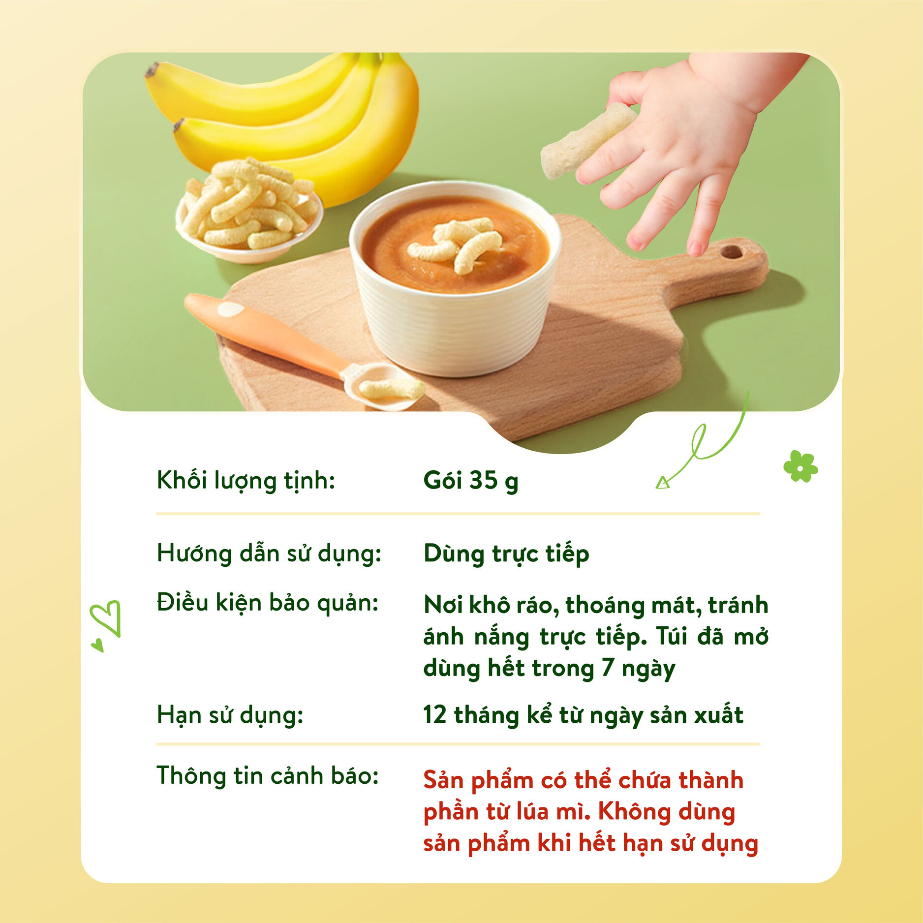 Cấu trúc thông minh: Kết cấu giòn xốp, dễ tan ngay trong miệng, đảm bảo an toàn tuyệt đối, phù hợp với hệ tiêu hóa non nớt.