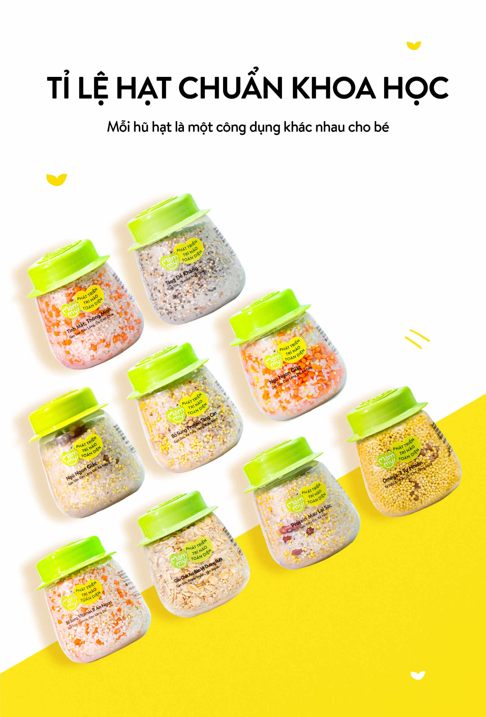 Mỗi hũ hạt là một sự kết hợp chuyên biệt hỗ trợ từng phương diện phát triển của trẻ: