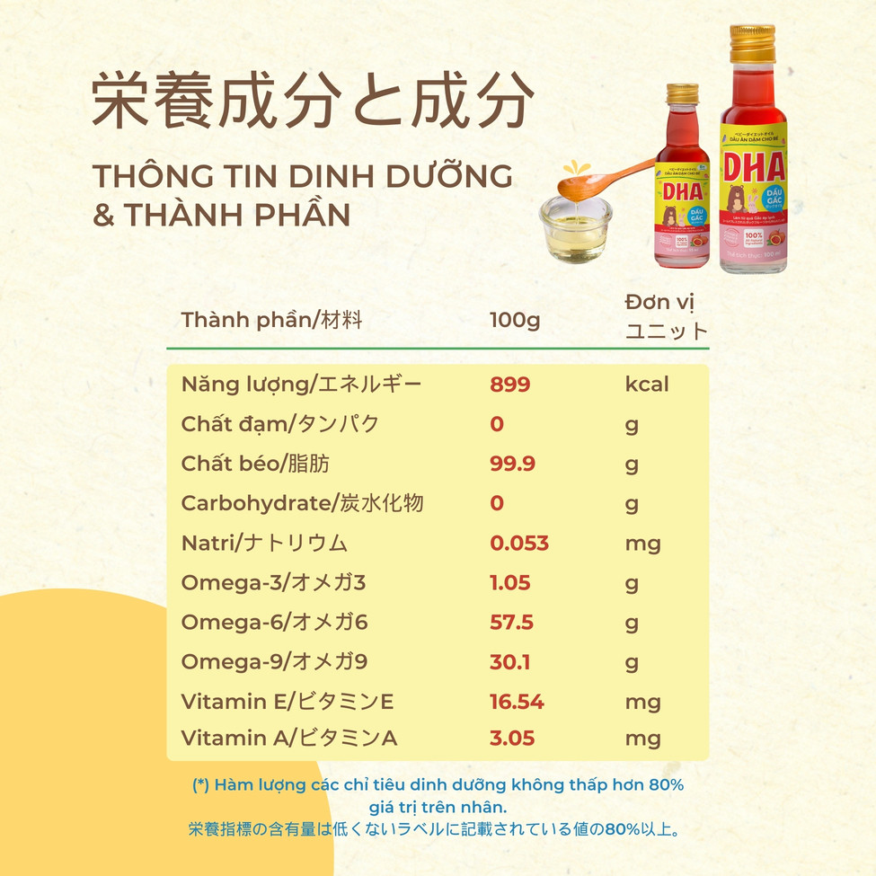 Dầu gấc nguyên chất, DHA bổ sung.