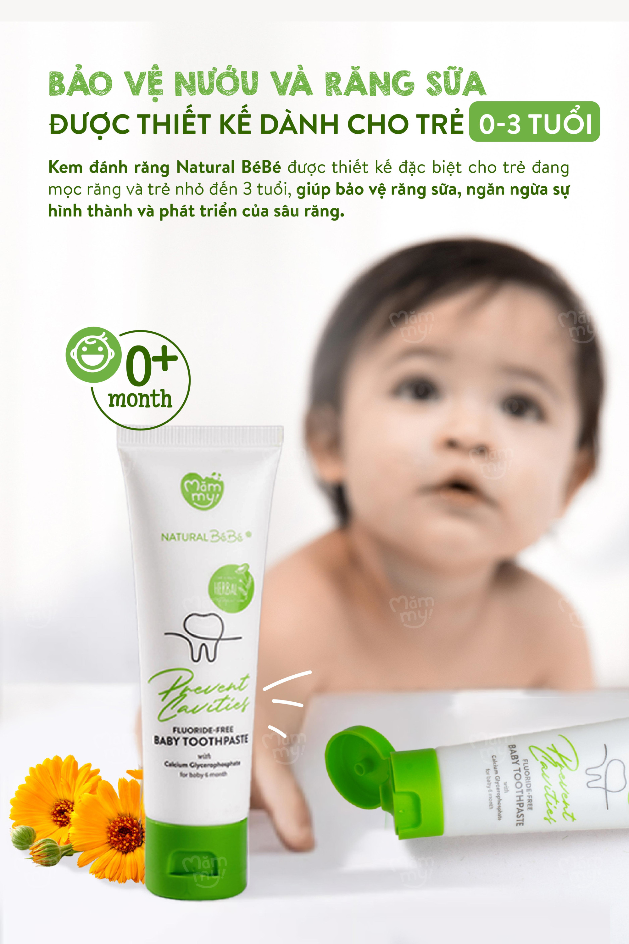 Kem Đánh Răng Thảo Dược Natural BéBé không chứa Fluoride - Ngừa sâu răng sữa và bảo vệ nướu của bé