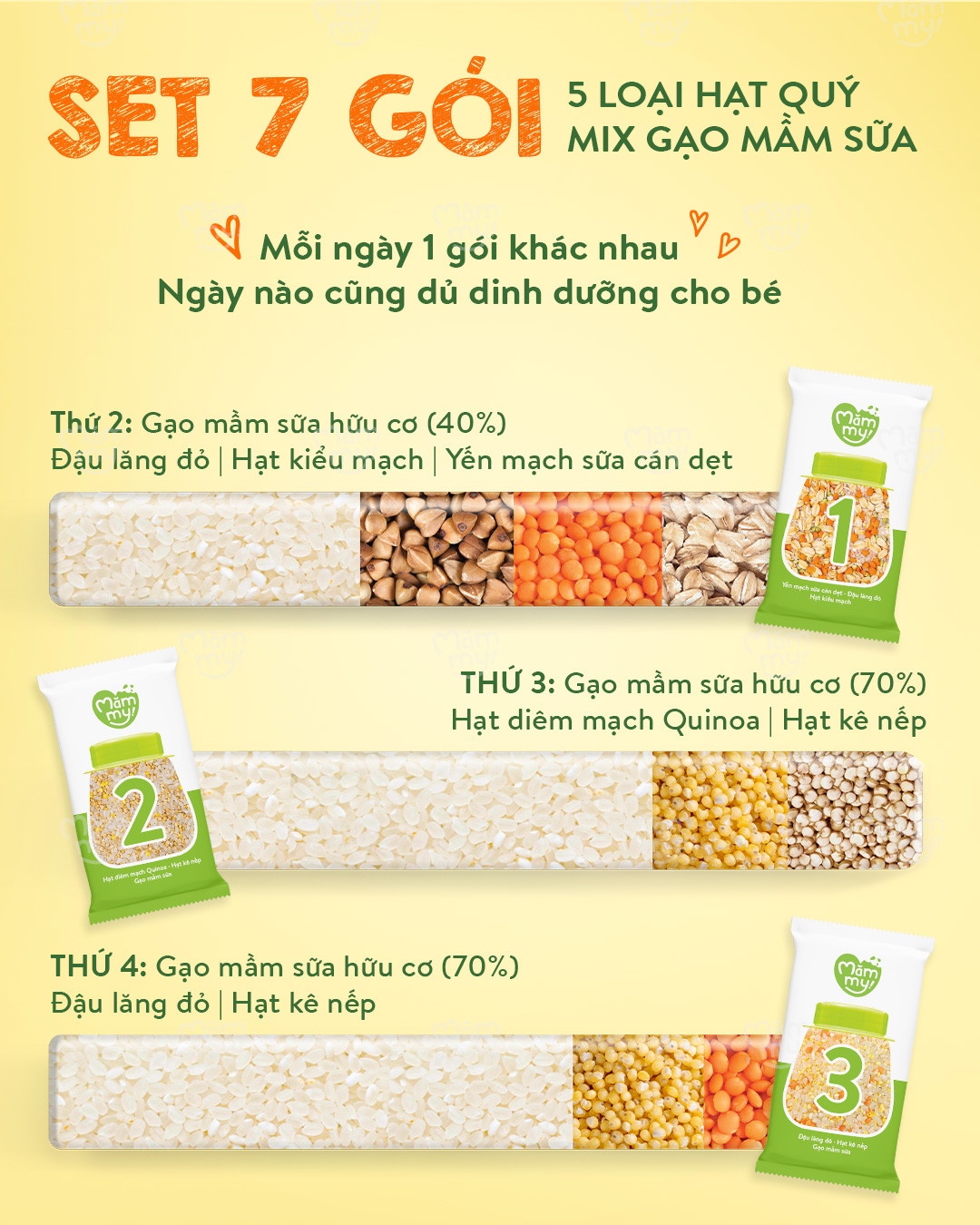Tên sản phẩm: Set 7 Gói Cháo Gạo Sữa Mix Hạt Hữu Cơ Mămmy