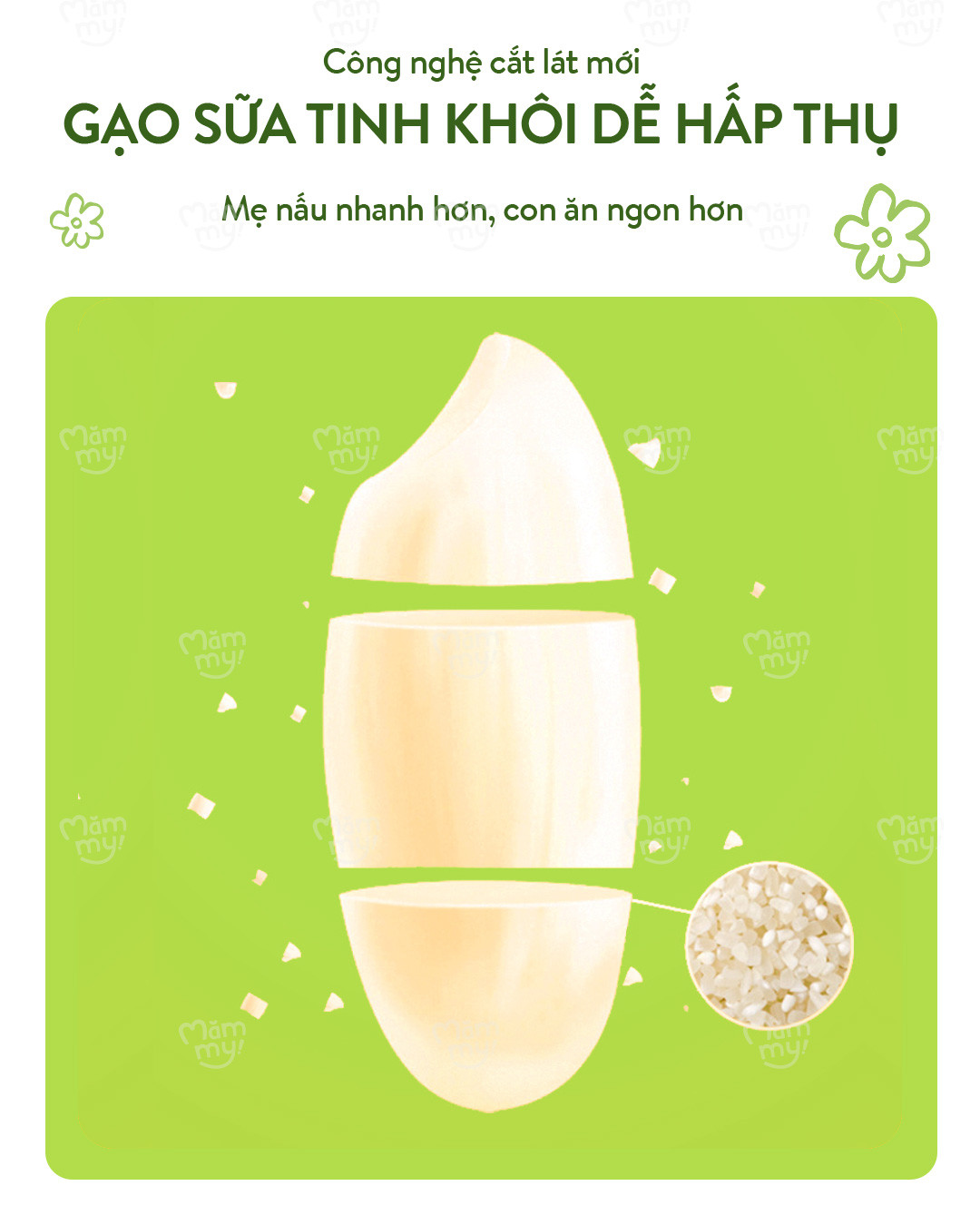 Tinh bột chuyển hóa chậm từ gạo mầm sữa giúp bé no lâu, hạn chế đói nhanh.