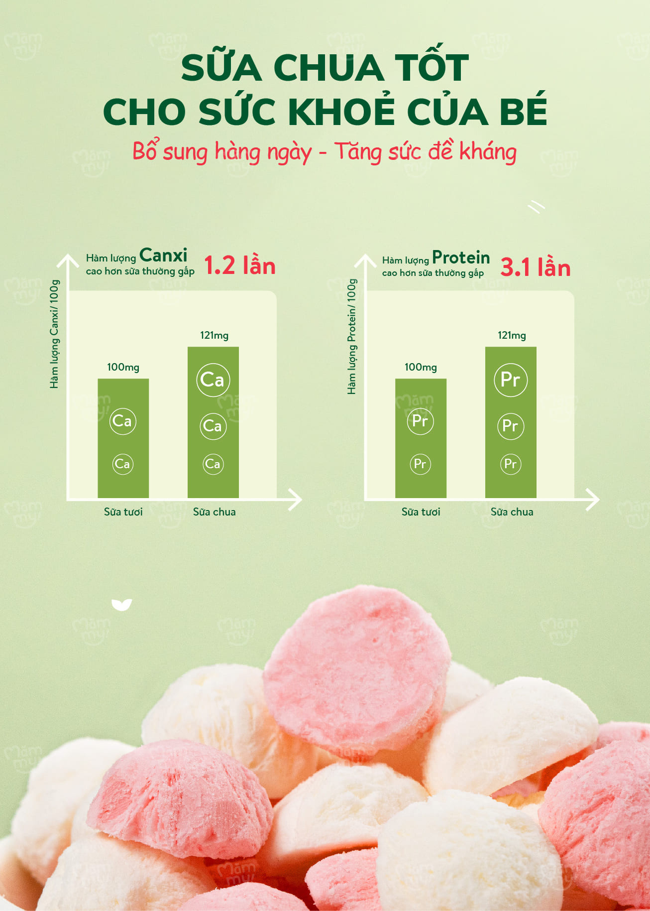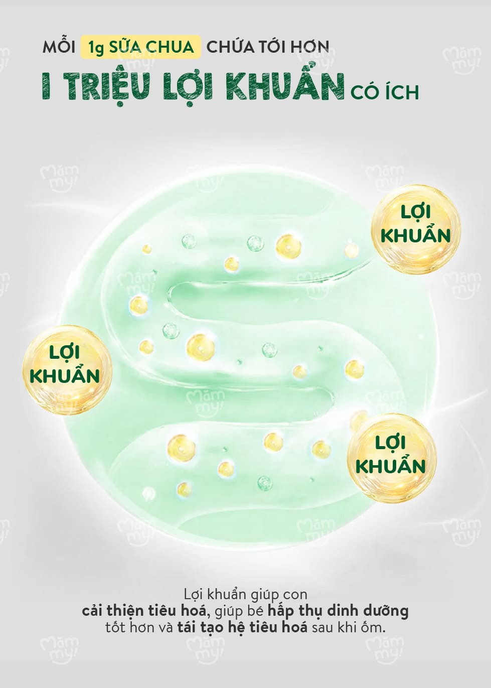 Hỗ trợ hệ tiêu hóa: Chứa hàng tỷ lợi khuẩn từ men sữa chua, giúp bé tiêu hóa tốt, ngăn ngừa táo bón và tăng cường miễn dịch.