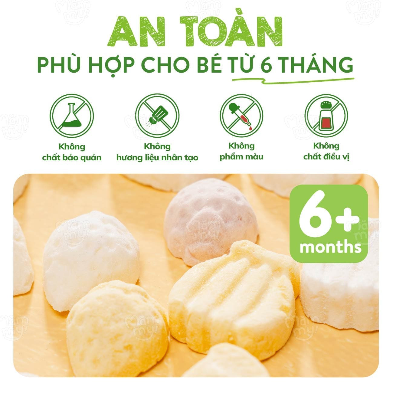 Giai đoạn ăn dặm là thời điểm vàng để bé tập ăn ngon, hấp thu tốt và tăng cân lành mạnh. Với Sữa Tươi Sấy Đám Mây Mămmy – Vị Chuối, mẹ mang đến cho bé một bữa phụ hoàn hảo với hương vị thơm ngon từ dâu tây tươi hòa quyện cùng sữa béo ngậy. Sử dụng công nghệ sấy lạnh hiện đại -40°C, từng viên sữa sấy mềm tan như những đám mây, giúp bé khám phá kết cấu thức ăn mới lạ đồng thời giữ trọn vẹn dinh dưỡng và vitamin tự nhiên, tạo nền tảng cho sự phát triển toàn diện của bé từ 6 tháng tuổi.
