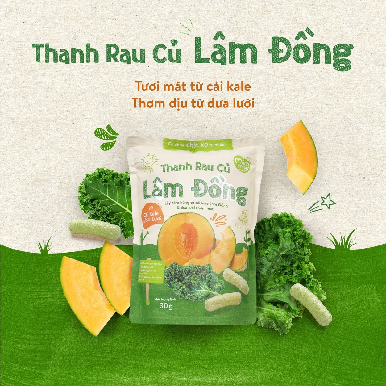 Tên sản phẩm: Thanh rau củ Lâm Đồng vị Cải Kale & Dưa Lưới